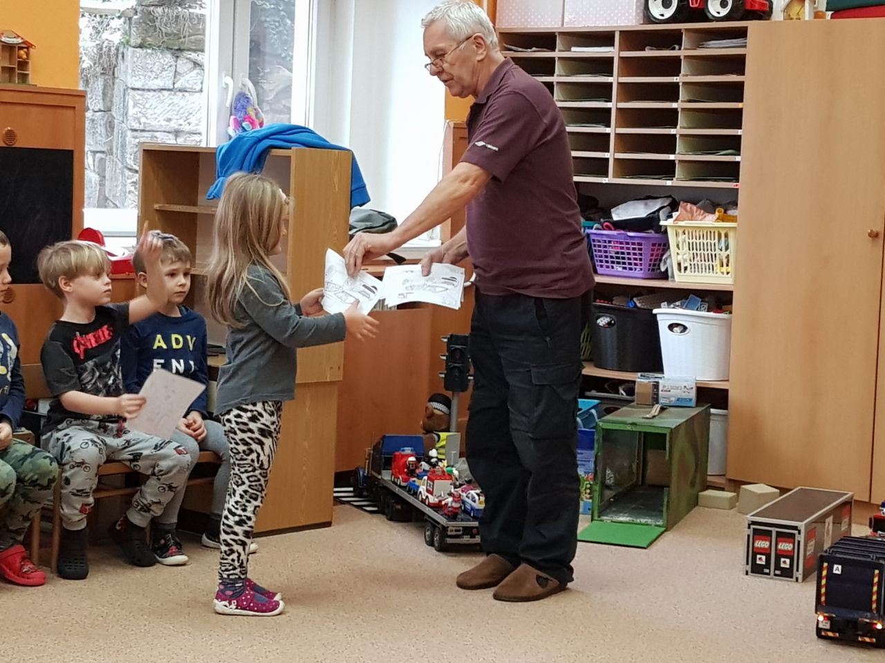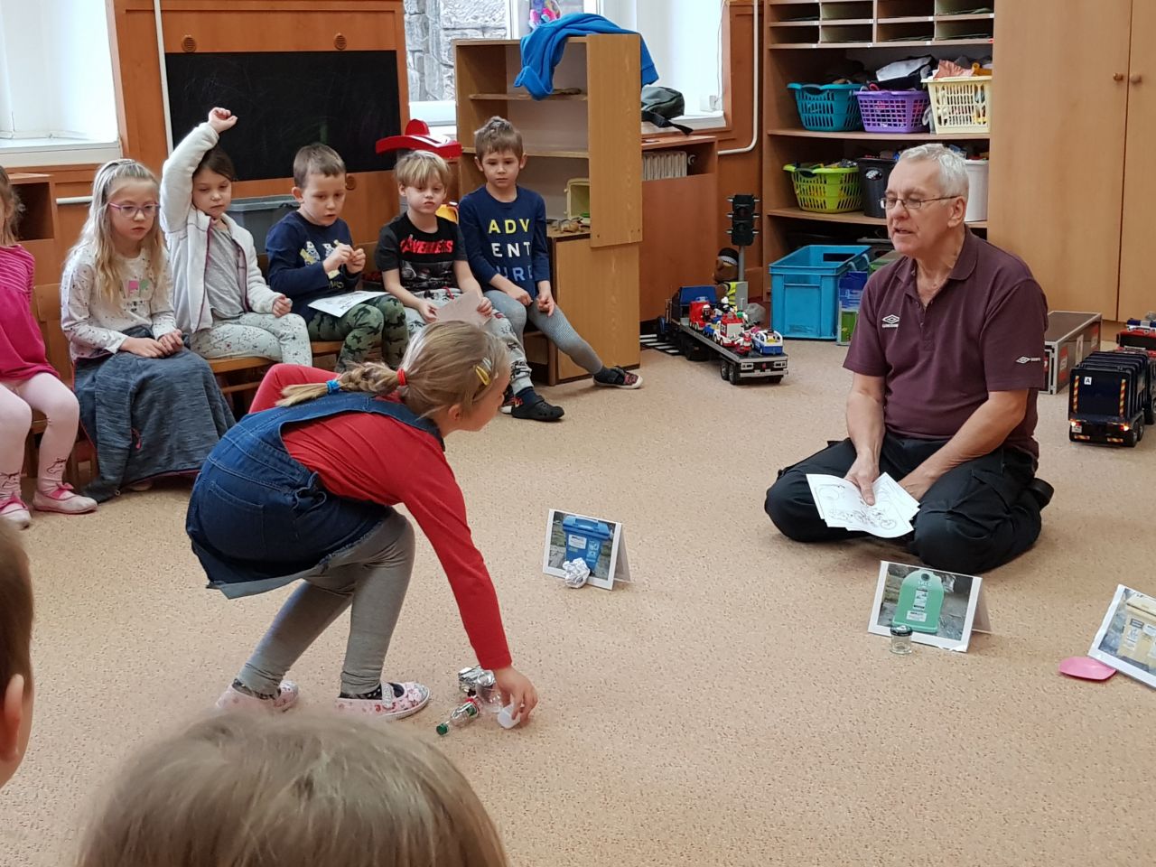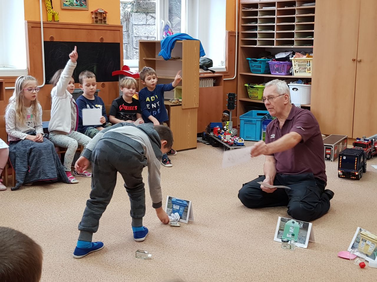 Pan Jirák nám se svými vlastnoručně sestavenými modely aut předvedl základy dopravní a ekologické výchovy, pohovořil o práci záchranných složek a děti si zasoutěžily a vytřídily odpad. Akce měla velký úspěch, líbila se i těm nejmenším.
