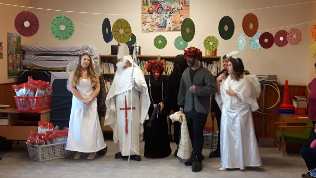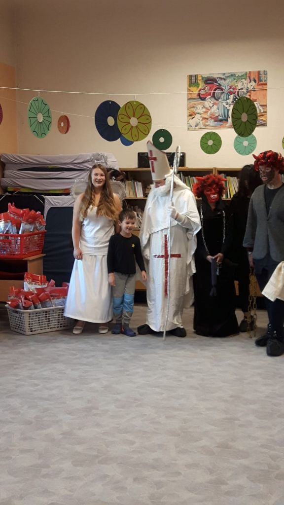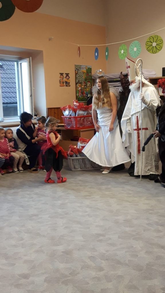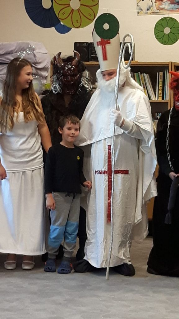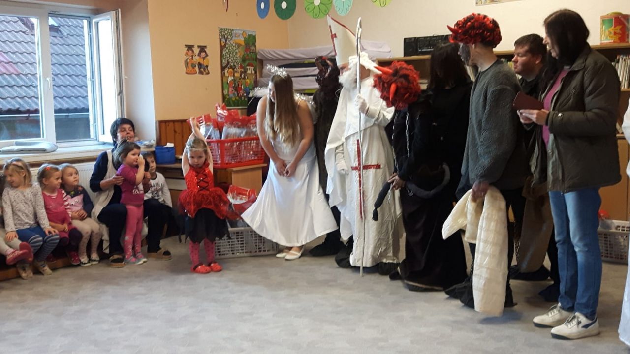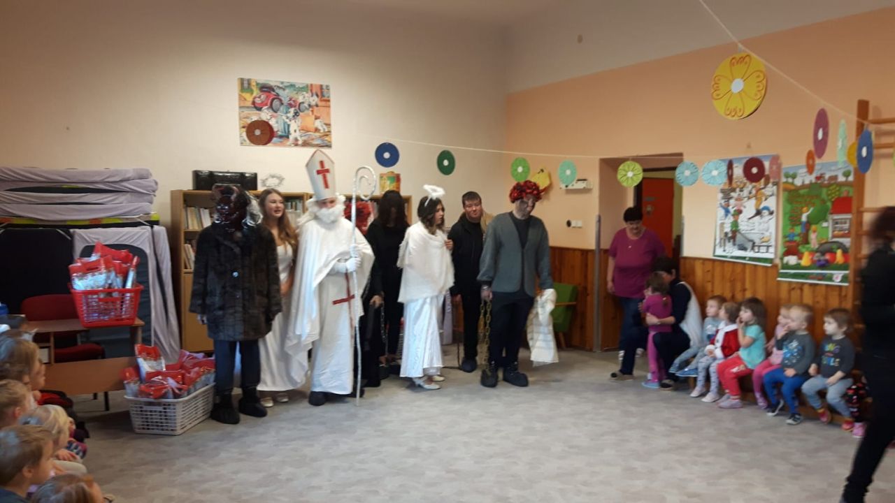 Navštívit nás přišly děti ze základní školy, které nám připravily mikulášskou nadílku. Mikuláš, anděl a čertíci byli moc hodní a žádné naše děťátko si neodnesli:)