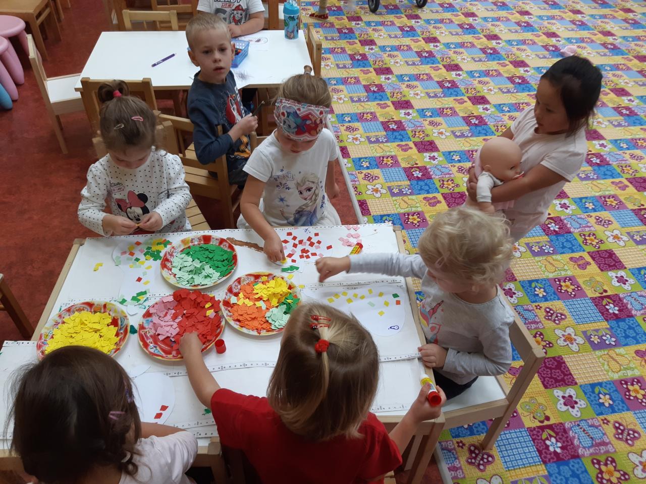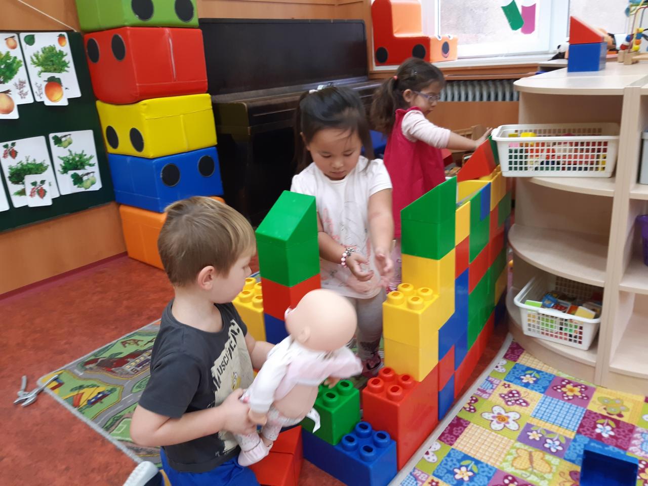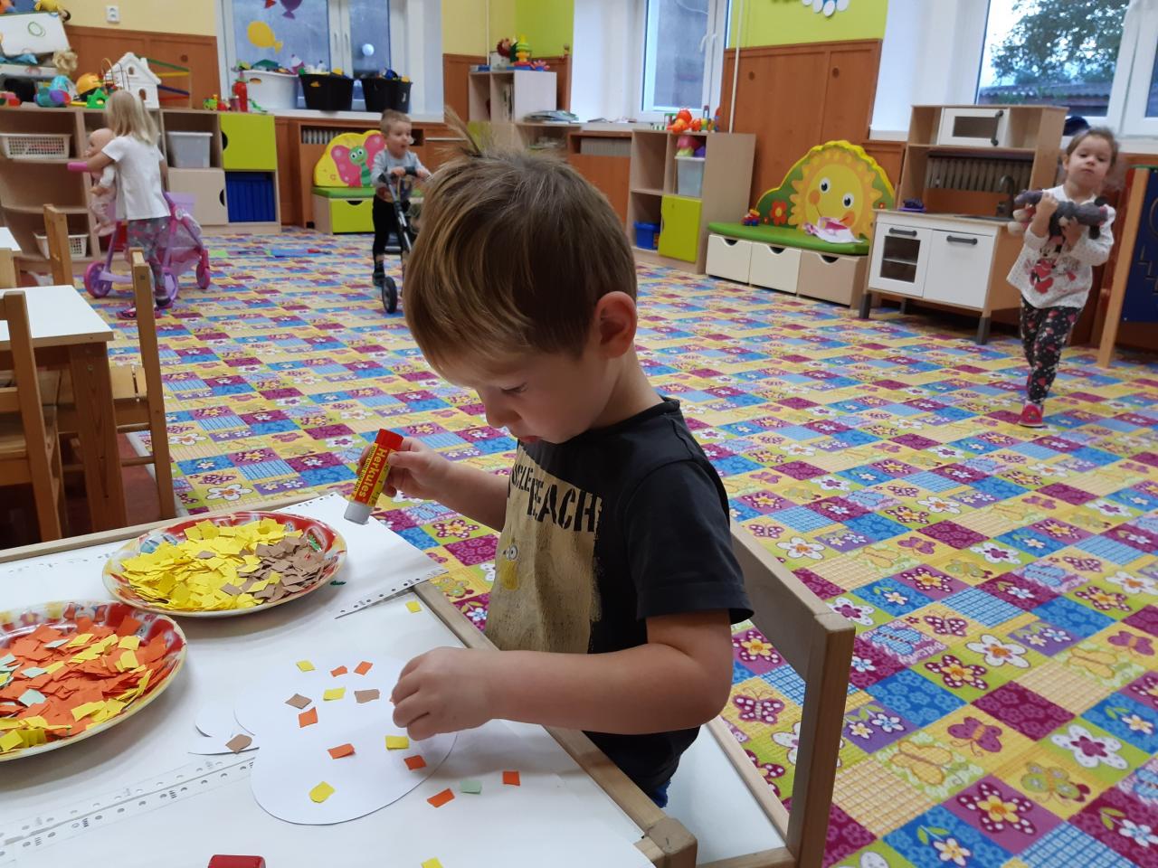Děti se ve školce postupně adaptovaly a vzdělávání pomocí hry, zpěvu, tvořivých a námětových činností se jim líbí.