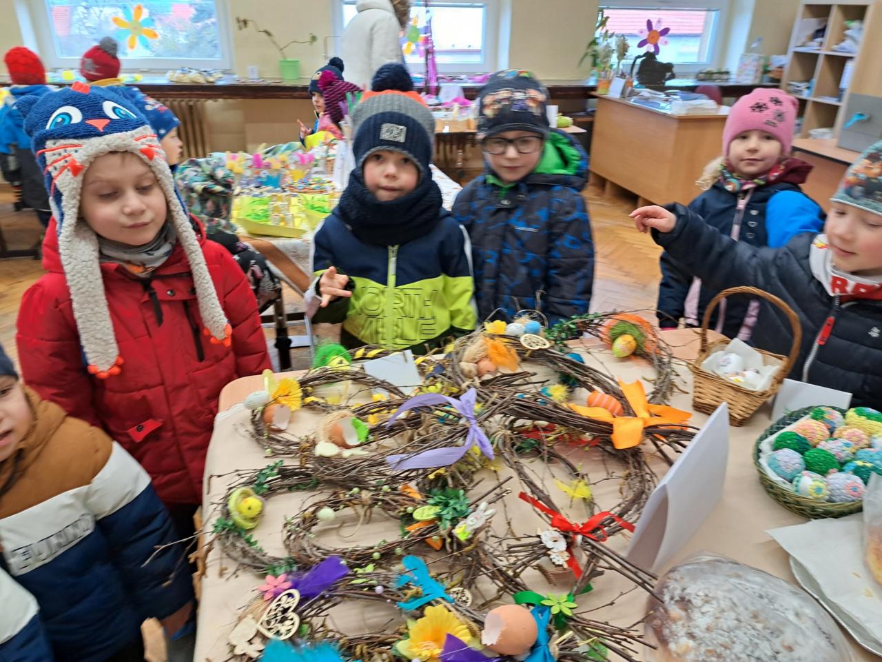Navštívili jsme krásnou velikonoční výstavu, kde všechny výrobky vytvořili žáci naší základní školy. A vajíčka, která jsme nabarvili ve školce, jsme pověsili na velikonoční strom před ZŠ.