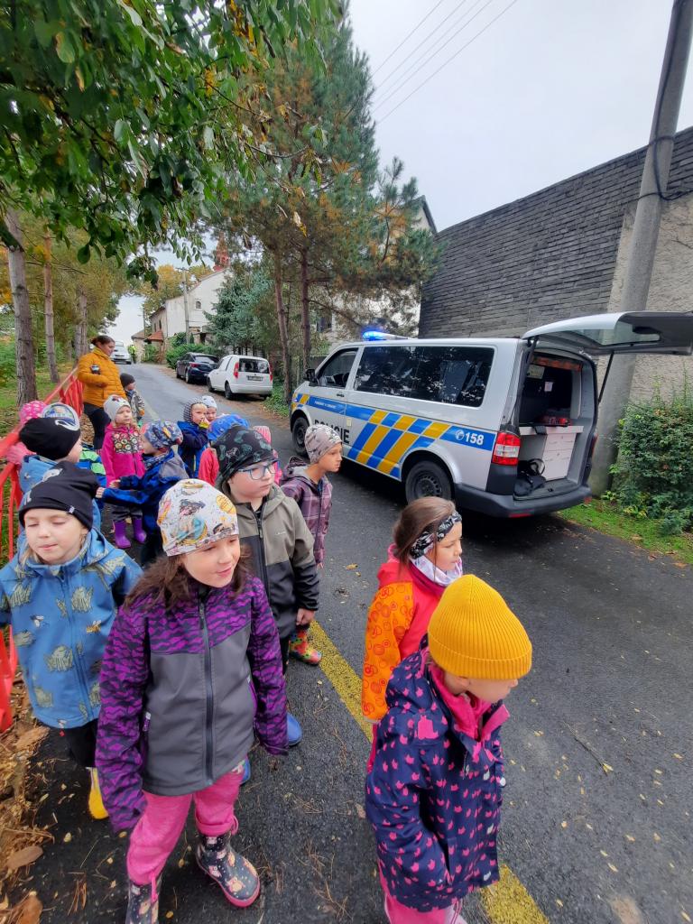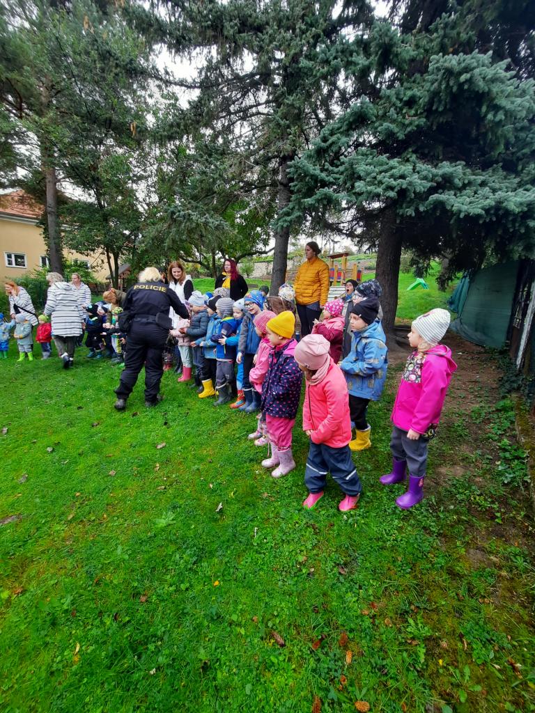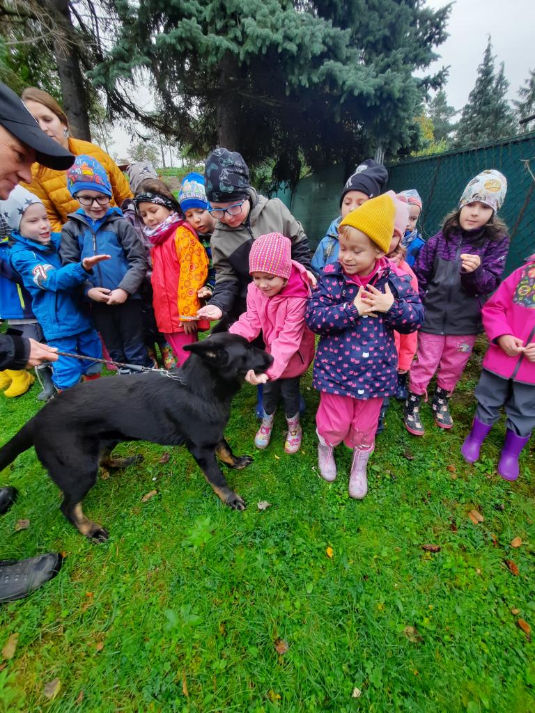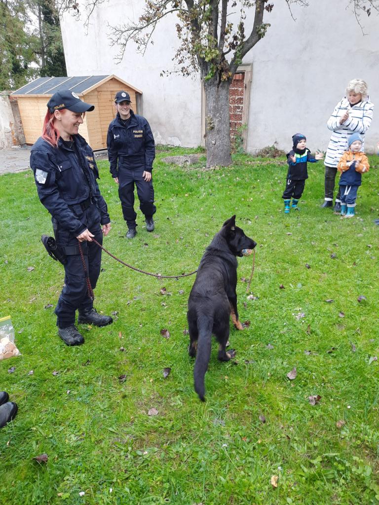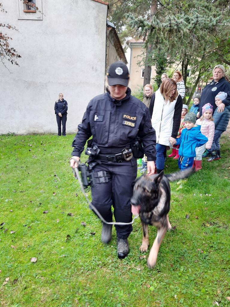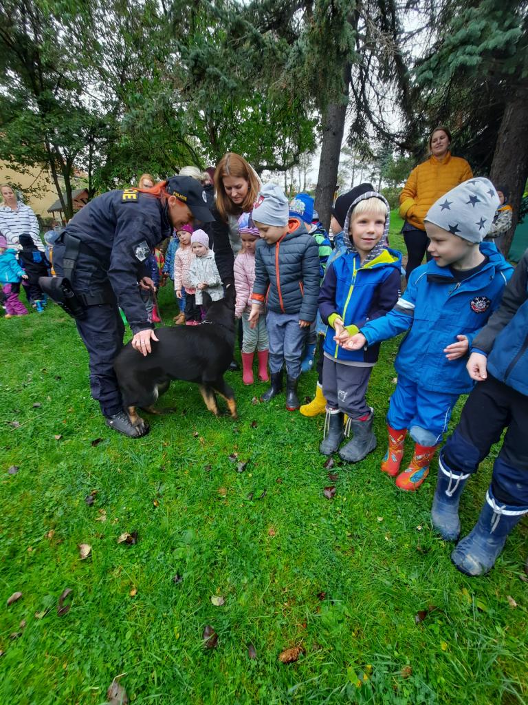 Do školky přijela Policie ČR a ukázala dětem vybavení policejních automobilů, práci psovodů se psy, promluvila o bezpečnosti v dopravě a o vlastním bezpečí dětí. Dětem se beseda moc líbila a my se těšíme na další spolupráci :-)