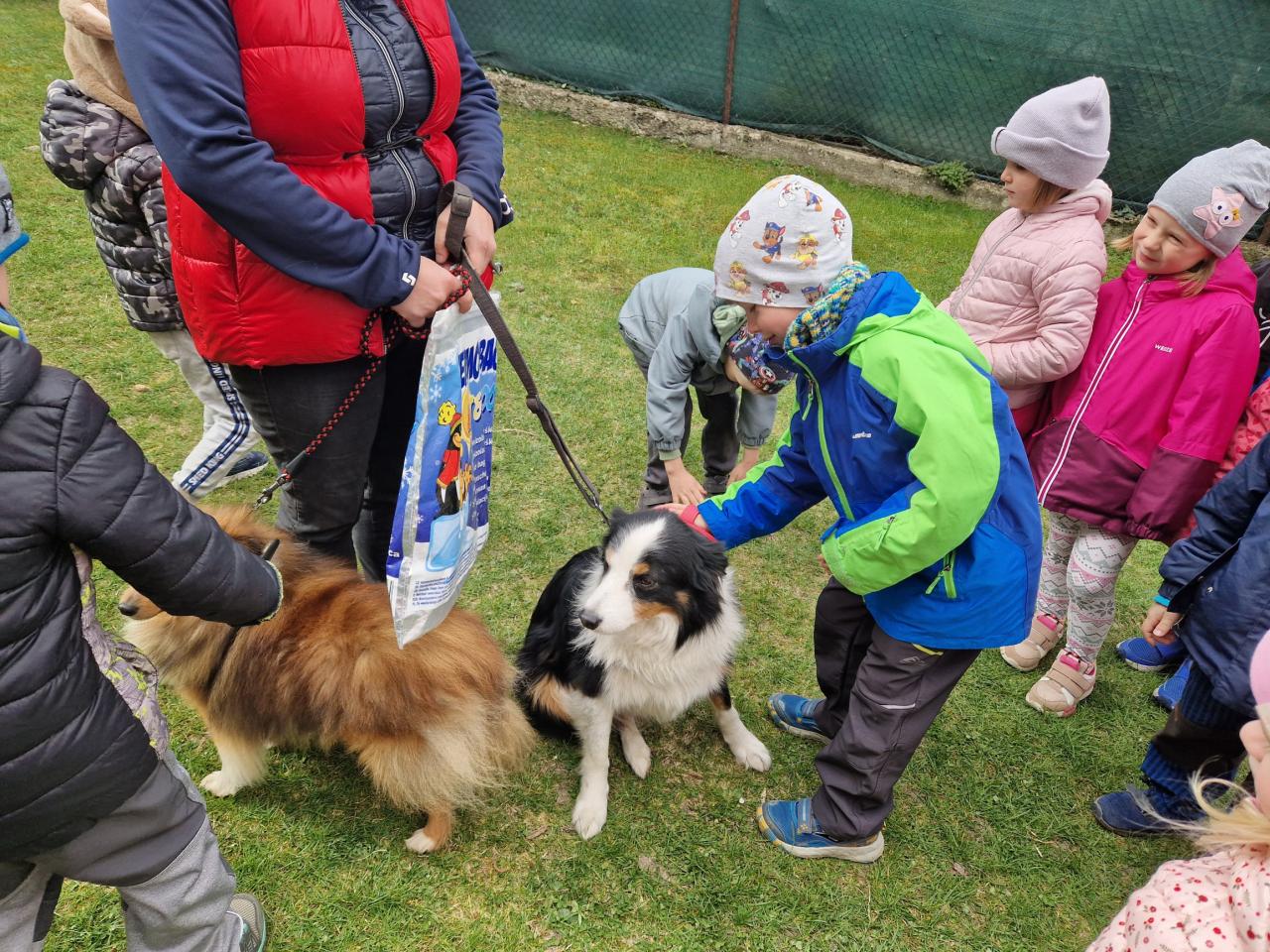 Děti ze všech tříd se zúčastnily setkání s pejsky vycvičenými metodou pozitivního psychosociálního fyziorehabilitačního působení na potřebné osoby.