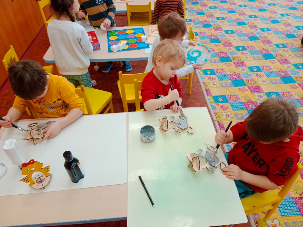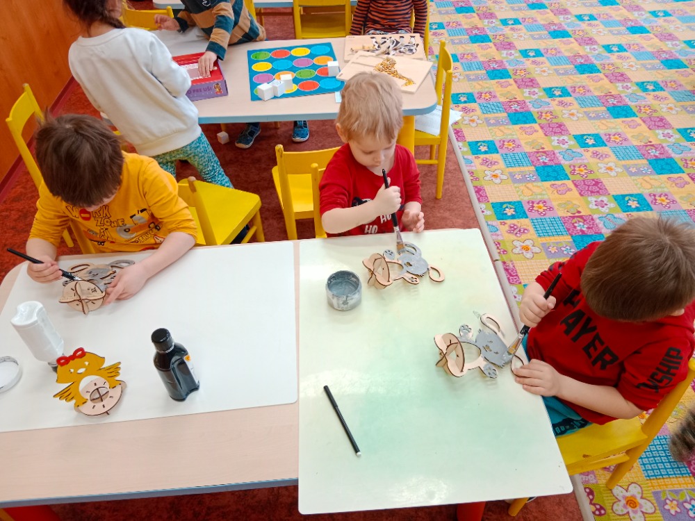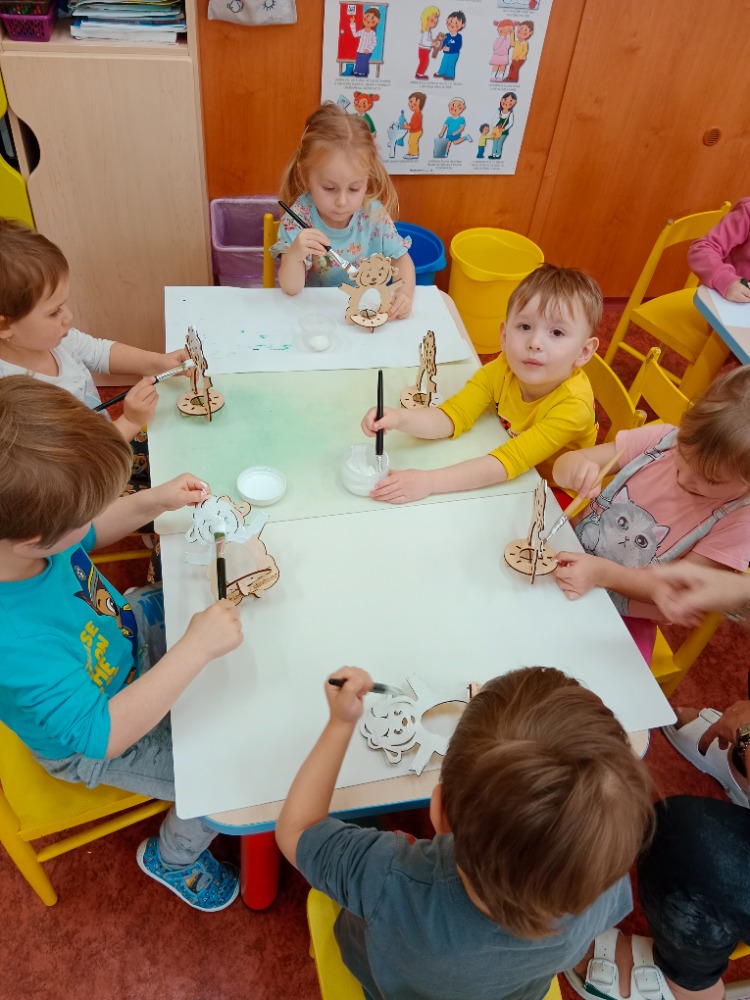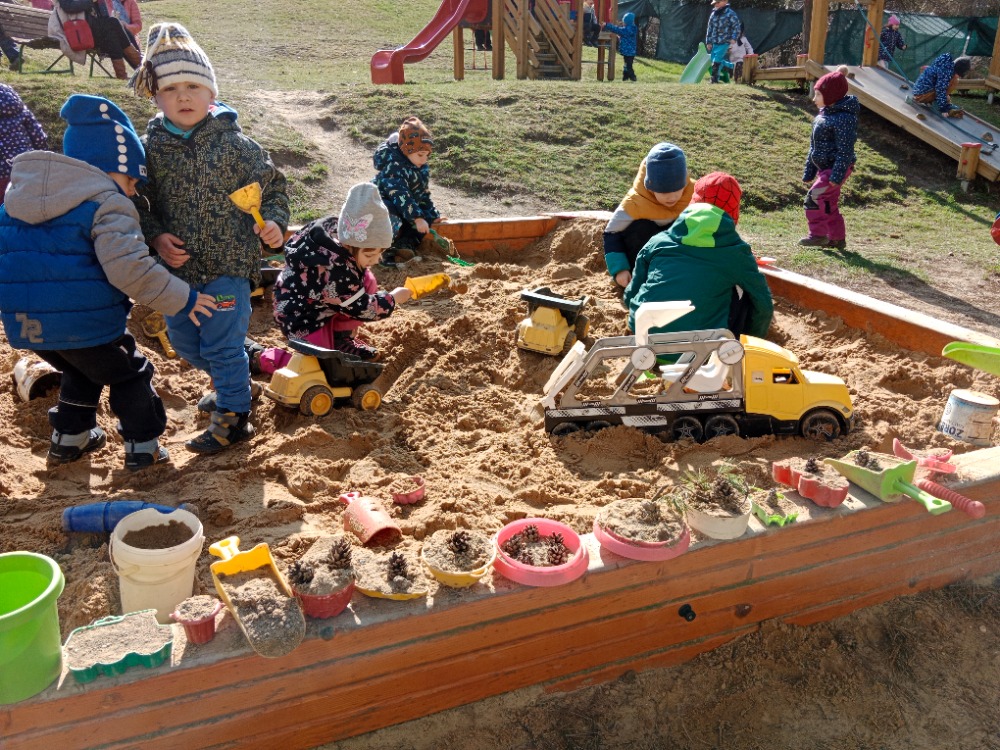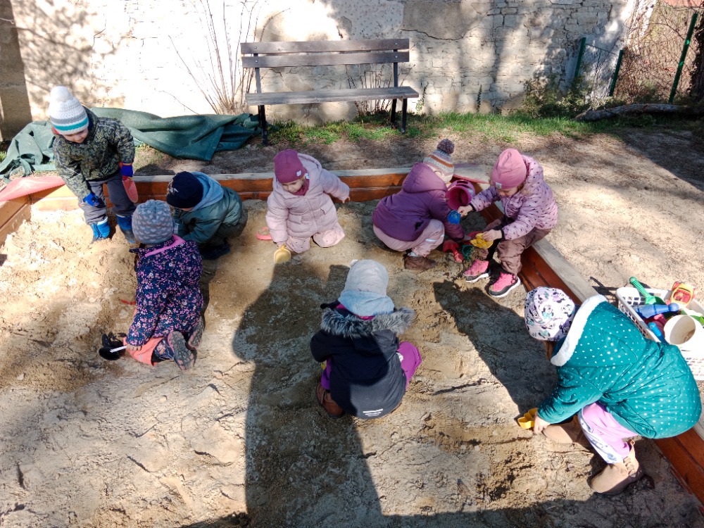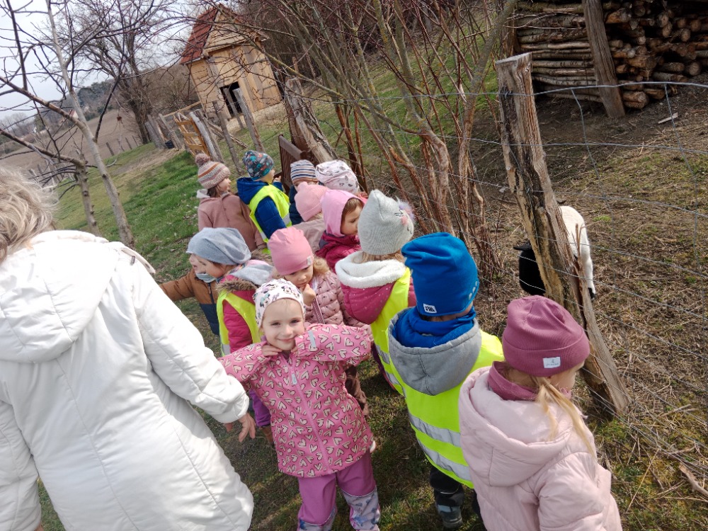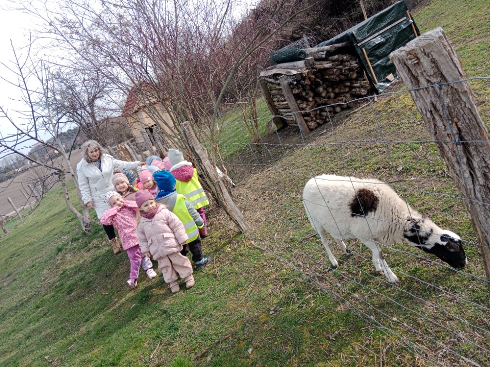 Procházka na farmu, hry na zahradě MŠ, malba stojánků na vajíčka